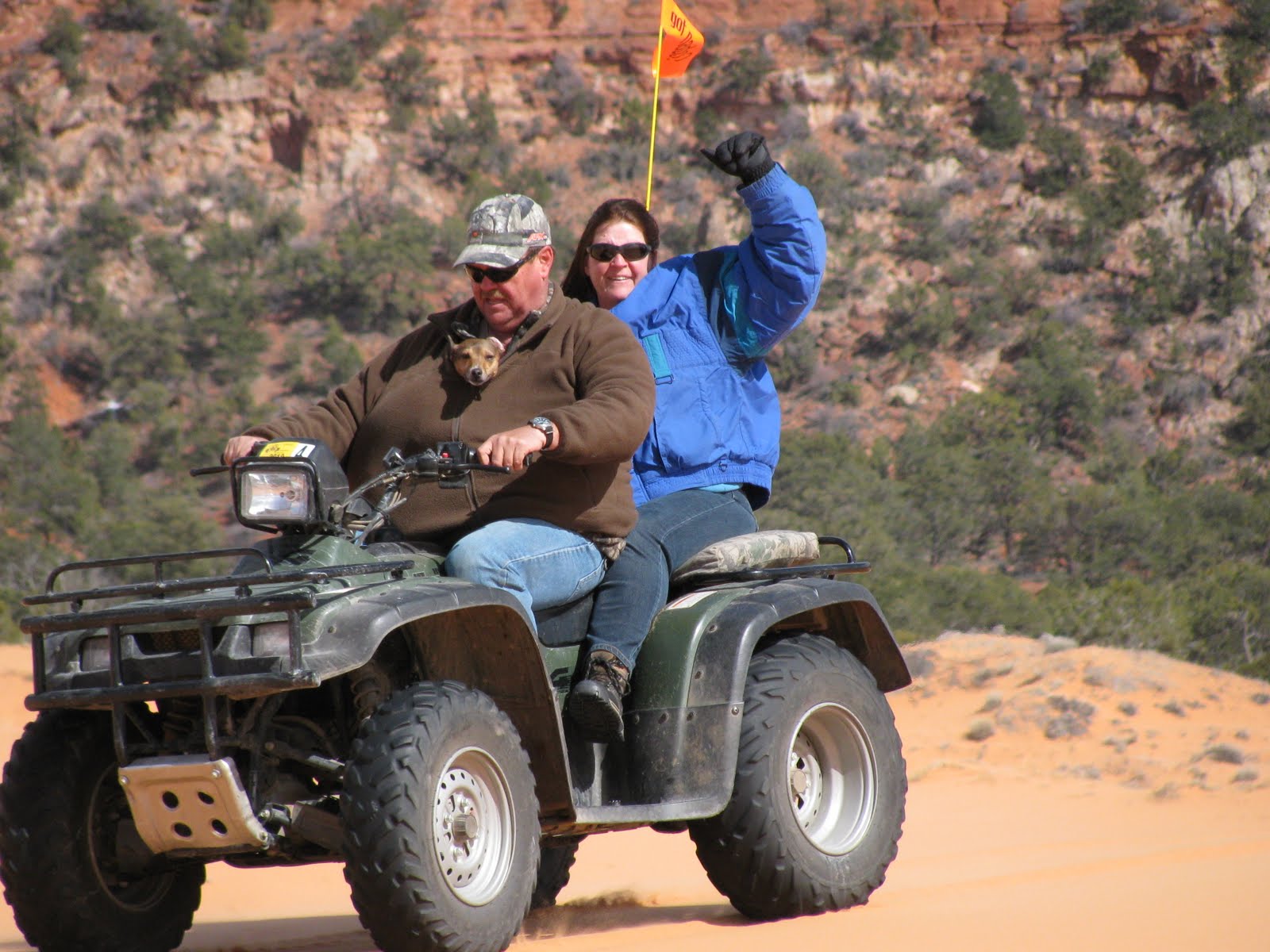What a great time we had. We decided before going to our campsite, we would drive into Kanab and get maps of the area we would be staying and pick up some sandwiches at the 3 bears restaurant. (Dad and I always ate there when we did inventories.) When dad went to pay for lunch, he got the pin numbers mixed up on his 2 credit cards and it locked both of his card up so they can't be used. He used some of the cash we were supposed to use for the campground.